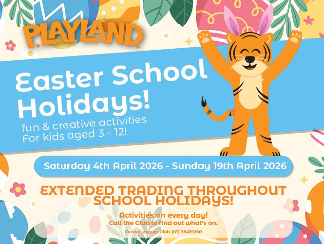 Playland Easter School Holiday FunFun & creative activities for kids aged 3–12 from 4–19 April 2026. Join us for daily entertainment and extended Playland trading throughout the holidays!