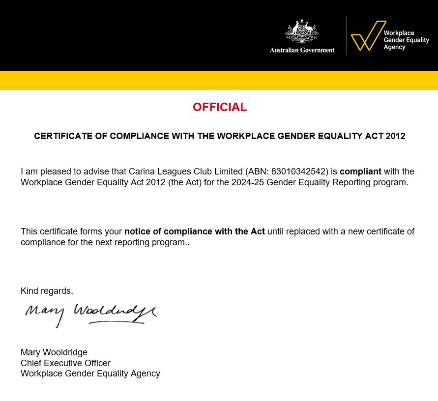 Download our WGEA COMPLIANCE LETTER.